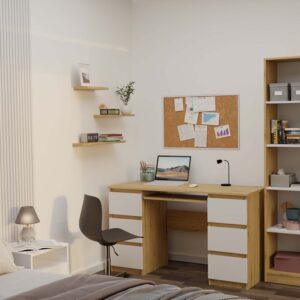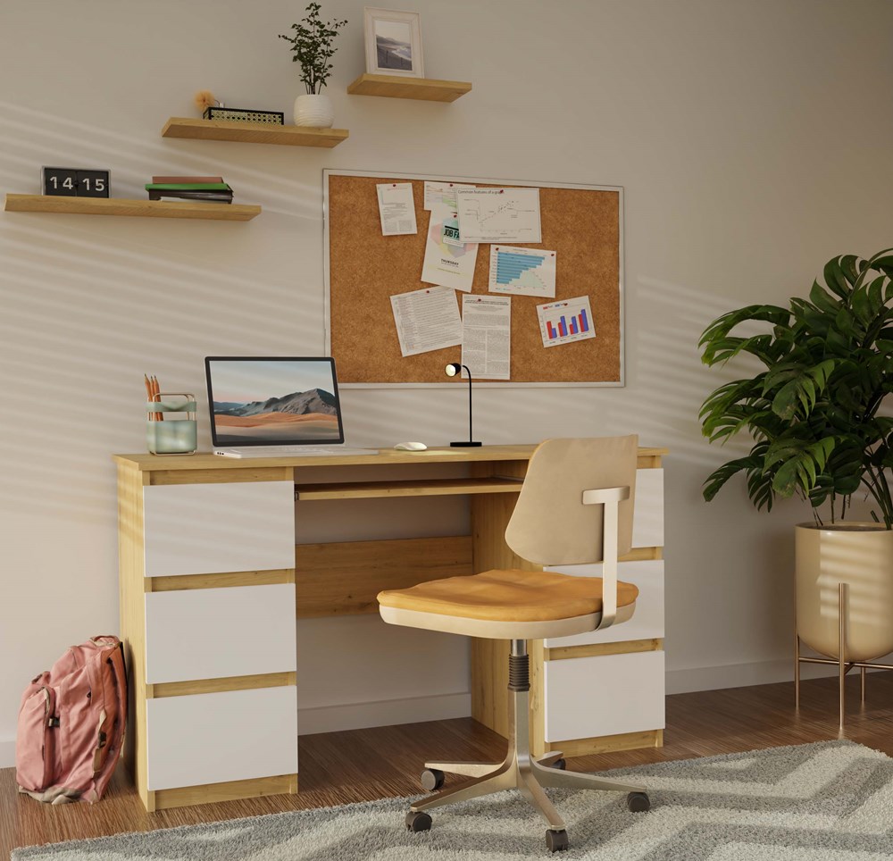 Biurko KUBA to praktyczny i estetyczny mebel zaprojektowany z myślą o codziennym użytkowaniu w domu, biurze, pracowni lub pokoju młodzieżowym. Nowoczesna kolorystyka oraz minimalistyczna forma sprawiają, że świetnie odnajdzie się zarówno w nowoczesnych, jak i klasycznych aranżacjach.