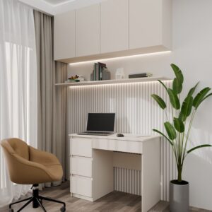 Biurko Mijas Lewe z 4 szufladami świetnie sprawdzi się w domowych pokojach jak i w biurze.