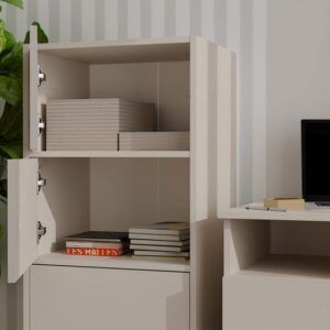 Dzięki pojemnym półkom ukrytym za gładkimi drzwiami, komoda zapewnia mnóstwo miejsca do przechowywania i ułatwia utrzymanie porządku w każdej przestrzeni.