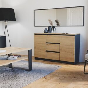 - Bezuchwytowe fronty szuflad oraz drzwi zapewniają wygodne użytkowanie i podkreślą modernistyczny charakter wnętrza