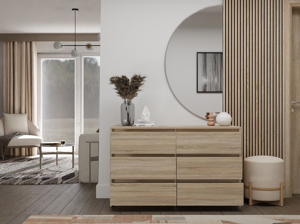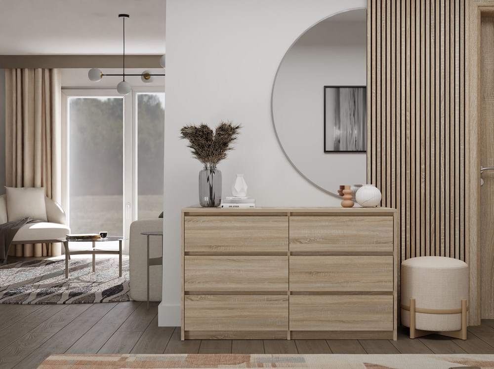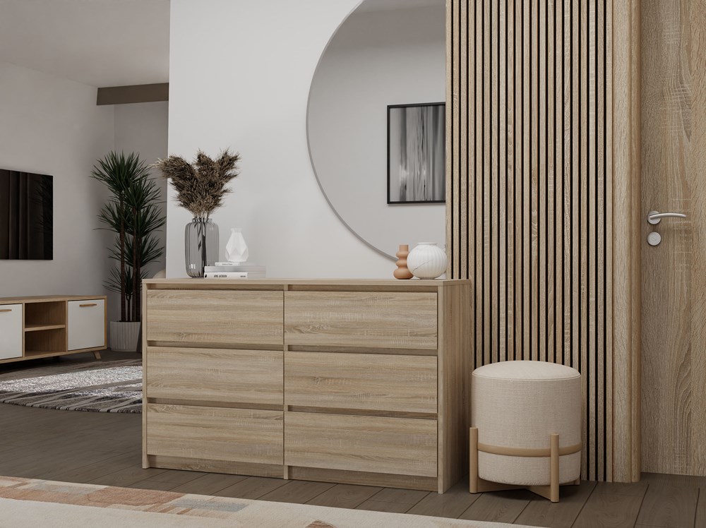 - Bezuchwytowe, fronty szuflad zapewniają wygodne użytkowanie i podkreślą modernistyczny charakter wnętrza