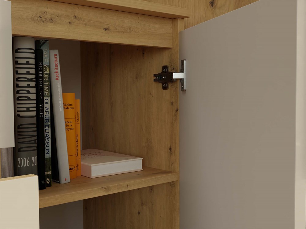 - Funkcjonalne wnętrze – półki oraz 3 pojemne szuflady, które ułatwiają organizację i przechowywanie.
