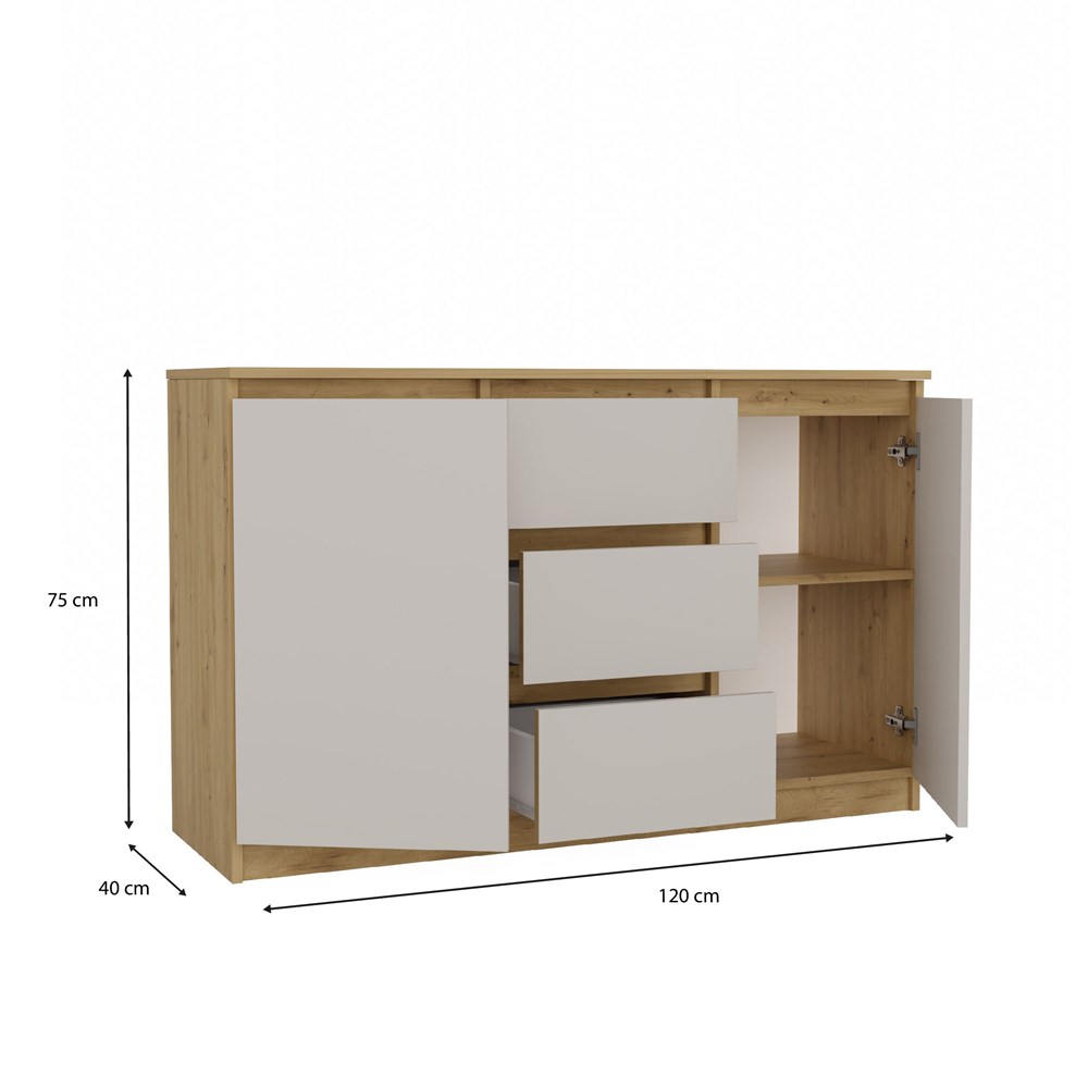 Komoda Malwa M6 120 DĄB ARTISAN BIAŁY
