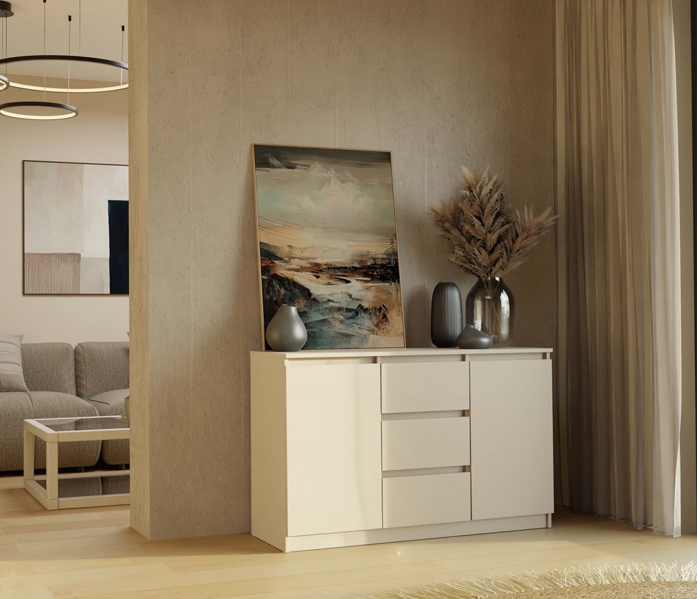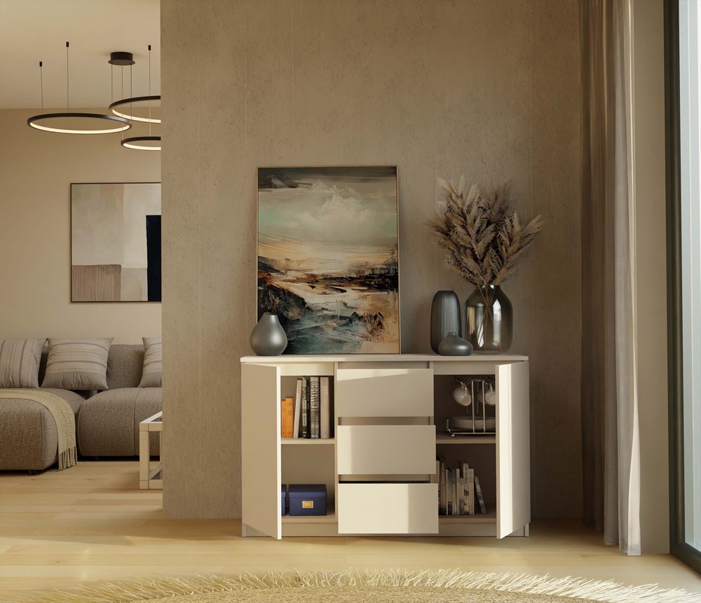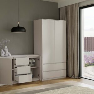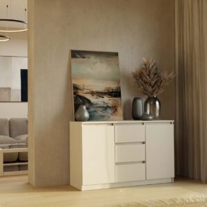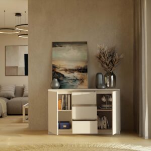 - Funkcjonalne wnętrze – półki oraz 3 pojemne szuflady, które ułatwiają organizację i przechowywanie.