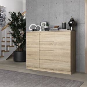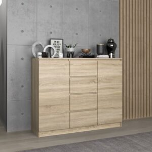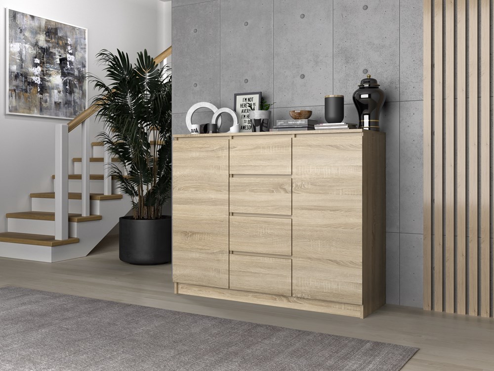 - Bezuchwytowe, fronty szuflad oraz drzwi zapewniają wygodne użytkowanie i podkreślą modernistyczny charakter wnętrza