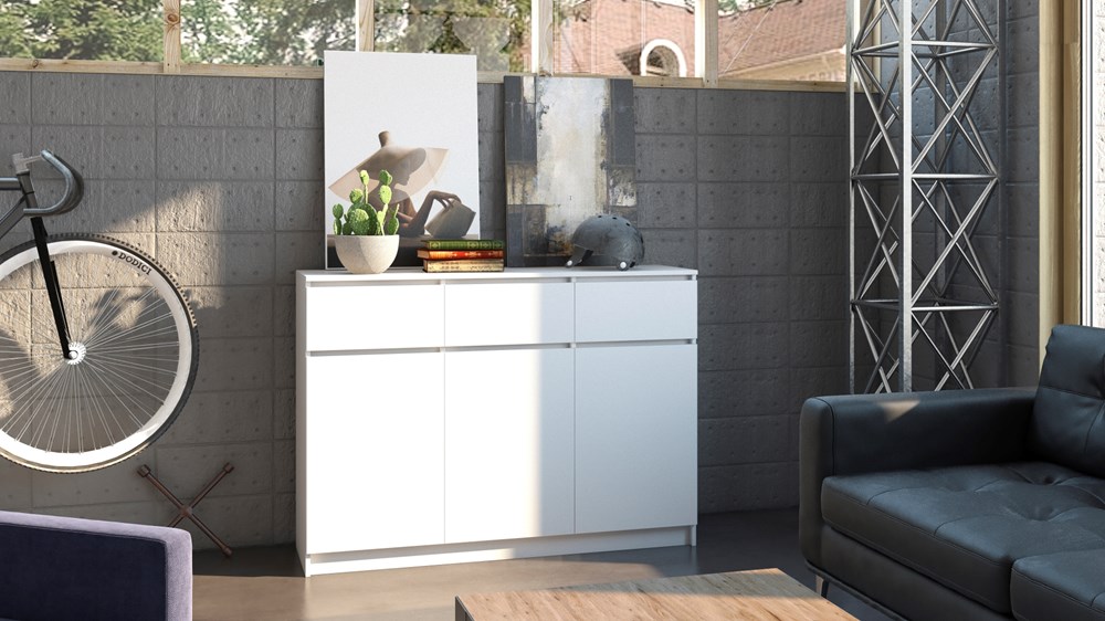 - Bezuchwytowe, fronty szuflad oraz drzwi zapewniają wygodne użytkowanie i podkreślą modernistyczny charakter wnętrza