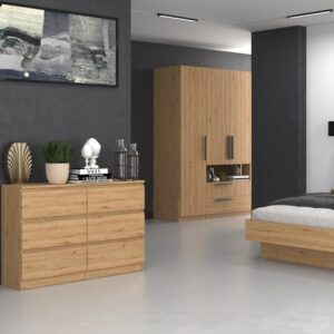 - Bezuchwytowe fronty szuflad zapewniają wygodne użytkowanie i podkreślą modernistyczny charakter wnętrza