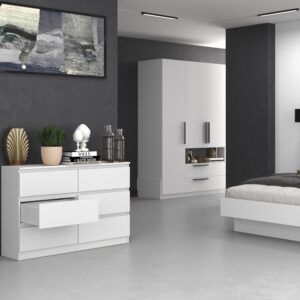 - Bezuchwytowe, fronty szuflad zapewniają wygodne użytkowanie i podkreślą modernistyczny charakter wnętrza
