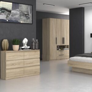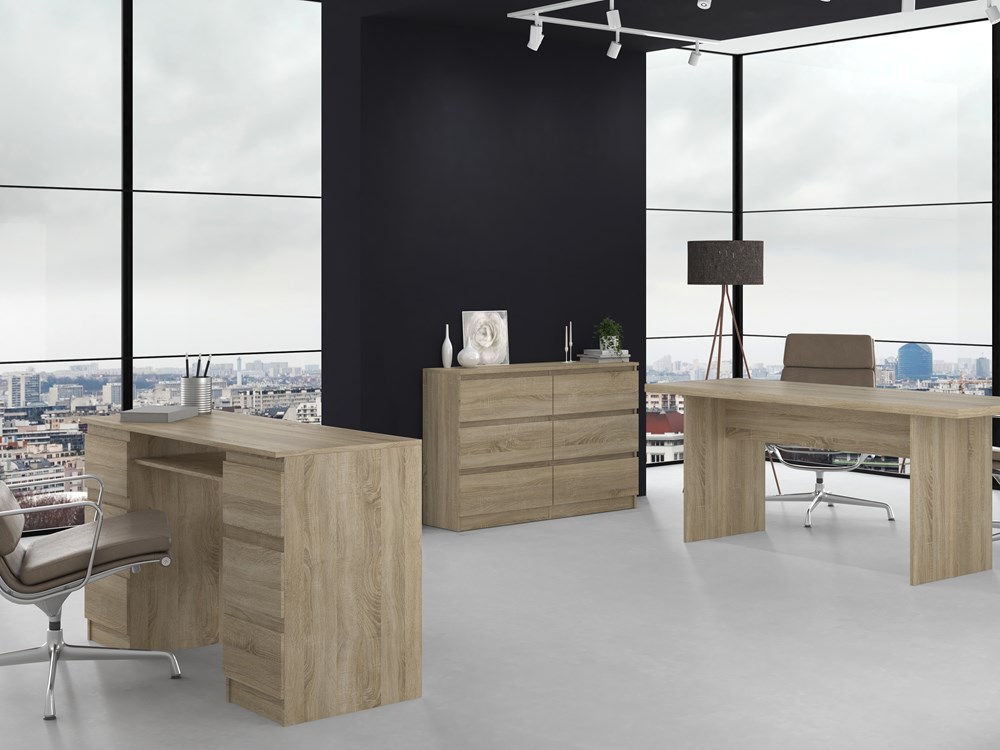 - Bezuchwytowe fronty szuflad zapewniają wygodne użytkowanie i podkreślą modernistyczny charakter wnętrza