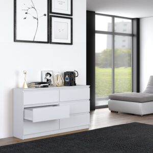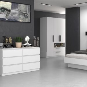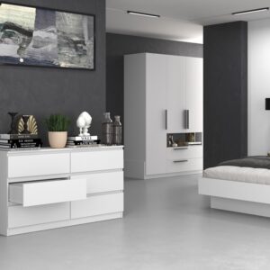 - Bezuchwytowe fronty szuflad zapewniają wygodne użytkowanie i podkreślą modernistyczny charakter wnętrza
