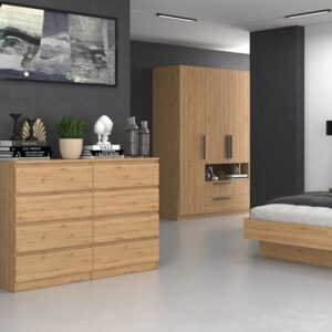 - Bezuchwytowe, fronty szuflad zapewniają wygodne użytkowanie i podkreślą modernistyczny charakter wnętrza.