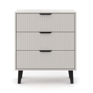 Komoda SCANDI 3S SLIM to idealna propozycja dla tych, którzy szukają praktycznego mebla do przechowywania z nutą nowoczesnego designu. Modny kolor Kaszmir w połączeniu z ryflowanymi frontami i wysokimi czarnymi nóżkami nadaje wnętrzu przytulności, a jednocześnie elegancji.