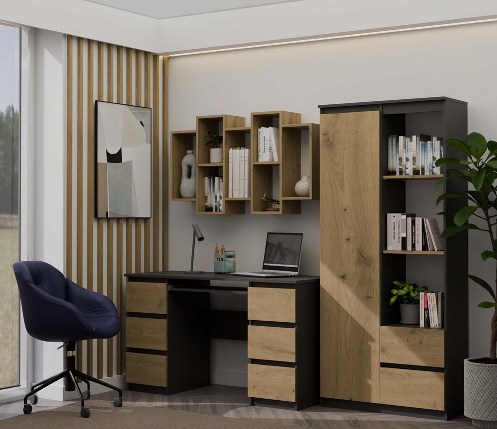 Dokładamy wszelkich starań, aby kolory mebli prezentowane na zdjęciach były odwzorowane możliwie jak najdokładniej. Należy jednak pamiętać, że ich odbiór może się różnić w zależności od indywidualnych ustawień monitora lub ekranu (takich jak jasność, kontrast, temperatura barwowa czy technologia wyświetlania). Rzeczywisty odcień produktu może się także różnić w zależności od warunków oświetleniowych.