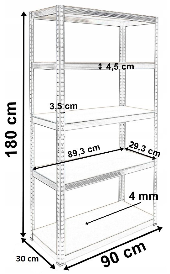 REGAŁ MAGAZYNOWY 5 PÓŁEK 180X90X30CM