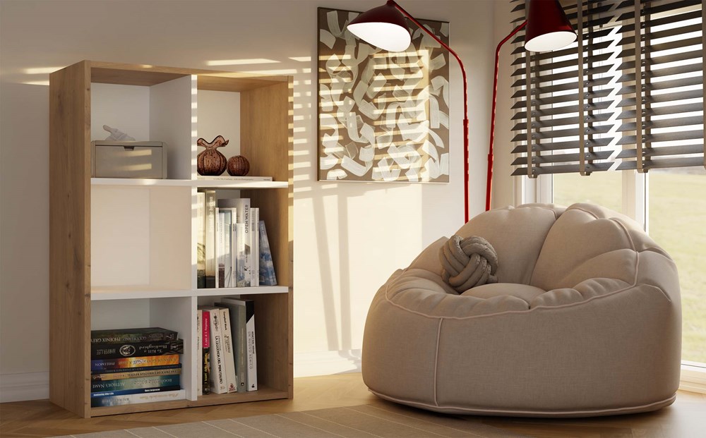- Funkcjonalny układ komorowy – idealny na książki, zabawki, segregatory i dekoracje