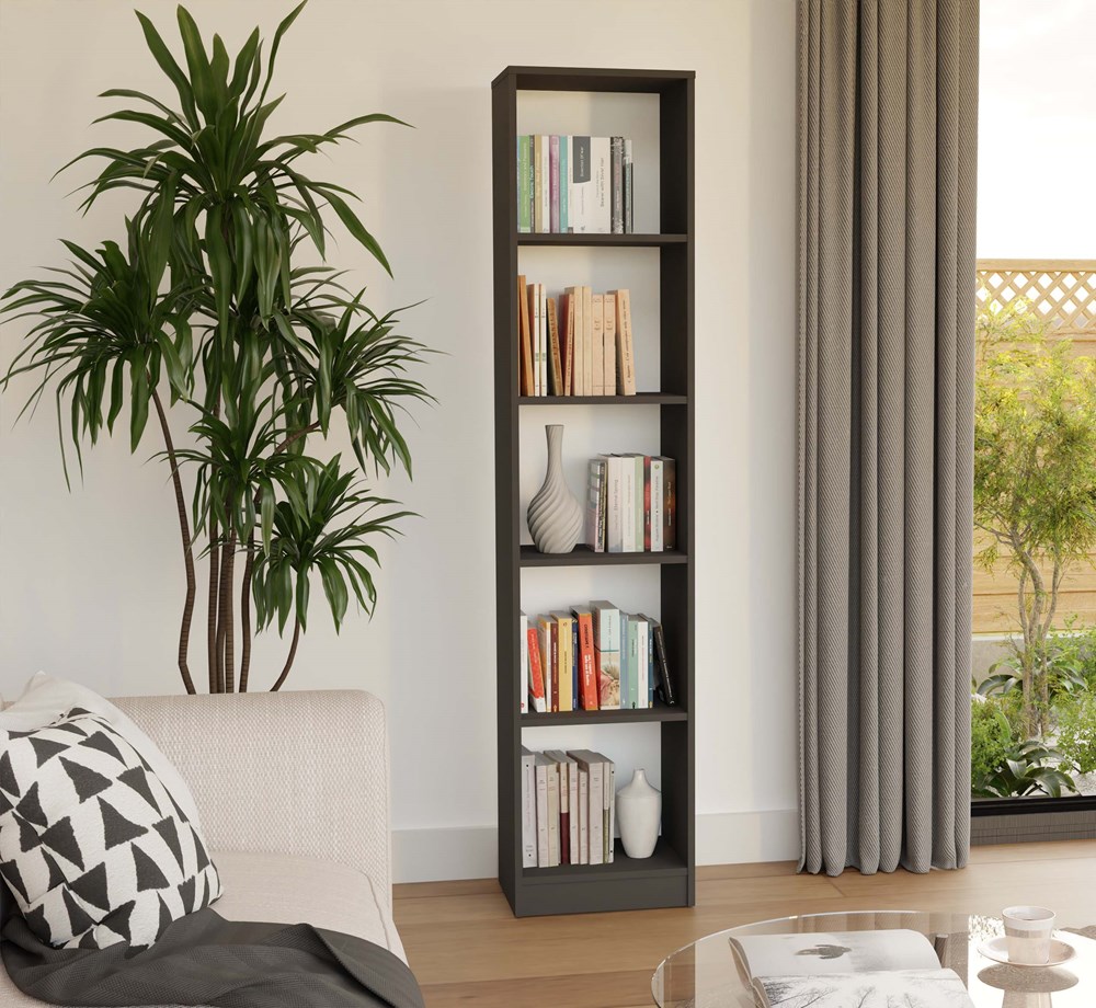 - Przestronne 5 półek – idealne na książki, segregatory, dokumenty i dekoracje