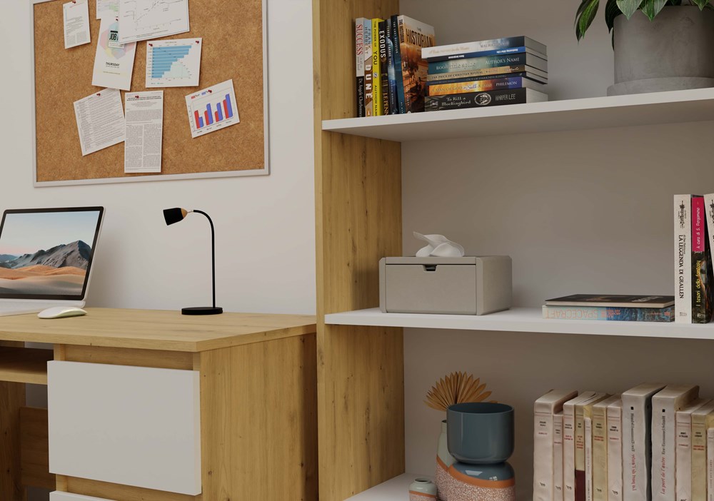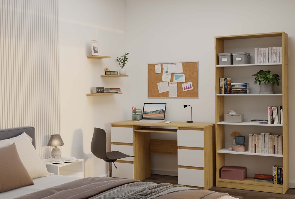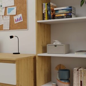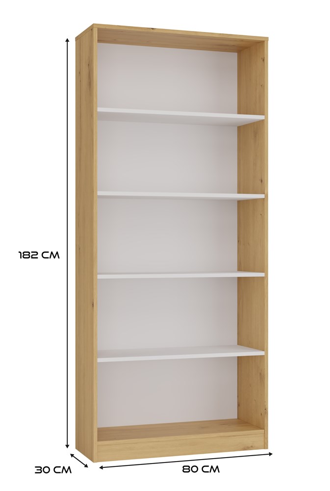 - Przestronne 5 półek – idealne na książki, segregatory, dokumenty i dekoracje