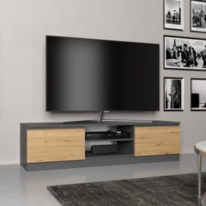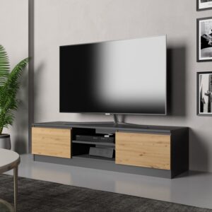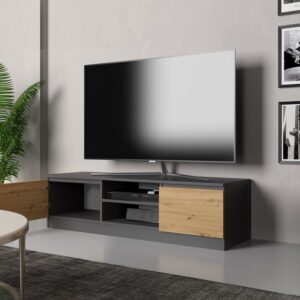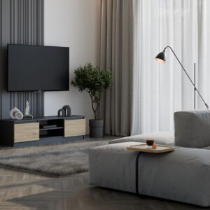 - Otwarta półka pozwala na wygodne ustawienie sprzętu RTV, a umieszczony w jej plecach otwór, ułatwia dyskretny montaż okablowania