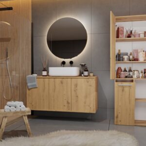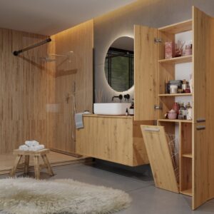 - W ofercie również szafki z otwartymi półkami oraz dwoma koszami