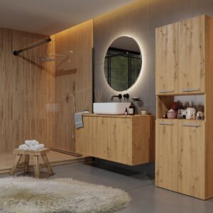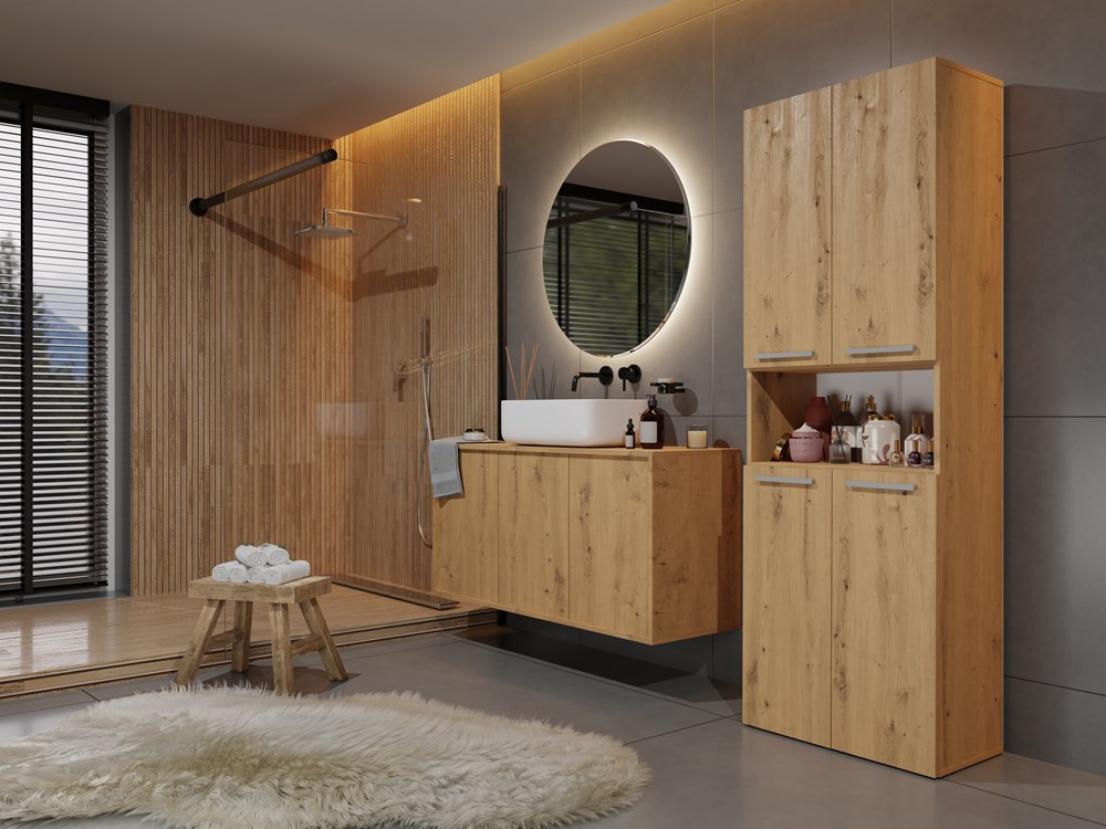 - Szafka posiada 3 praktyczne półki oraz 2 kosze