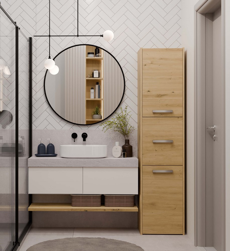 - Minimalistyczne uchwyty zapewniają wygodny dostęp do zawartości mebla