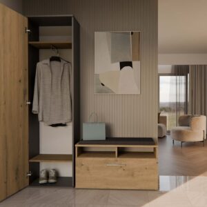 - Możliwość zakupu garderoby DUO – szafa DUO + dodatkowa dostawka z szafką oraz wieszakami.