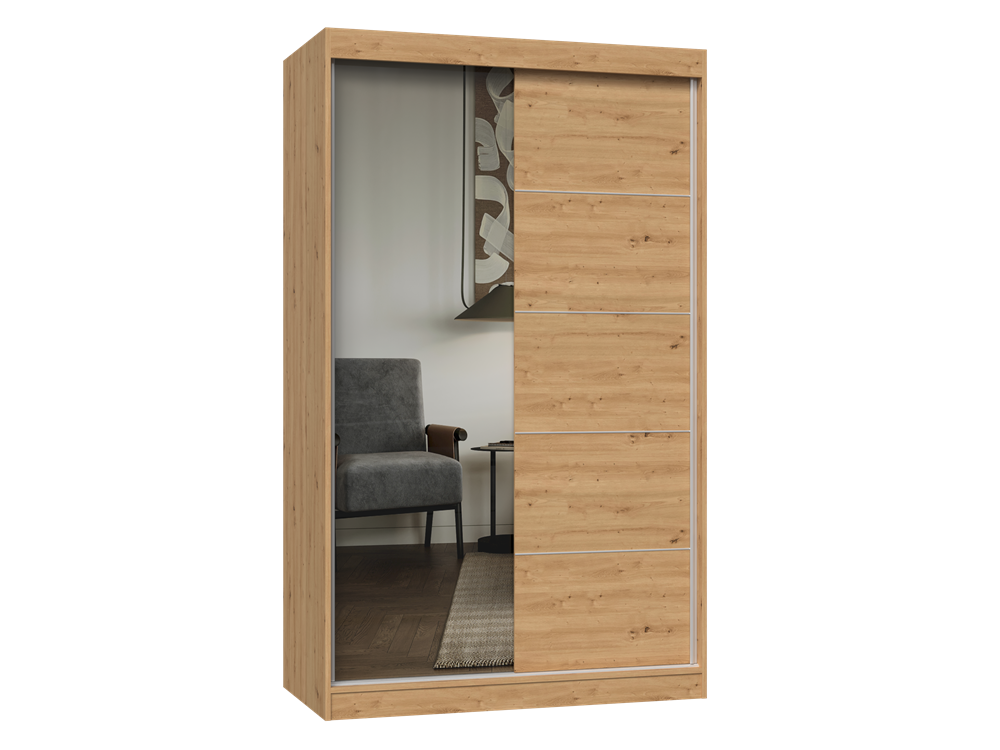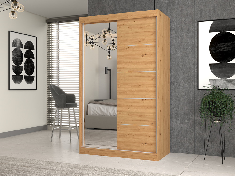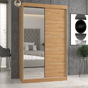 Na frontach jednych drzwi znajduje się duże lustro. Dzięki temu pomieszczenie w którym jest szafa, zostaje optycznie powiększone.