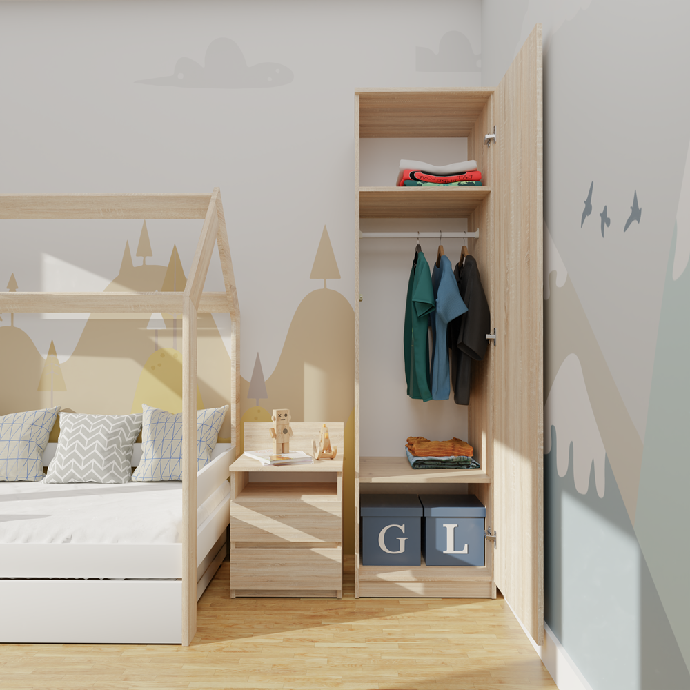 Dokładamy wszelkich starań, aby kolory mebli prezentowane na zdjęciach były odwzorowane możliwie jak najdokładniej. Należy jednak pamiętać, że ich odbiór może się różnić w zależności od indywidualnych ustawień monitora lub ekranu (takich jak jasność, kontrast, temperatura barwowa czy technologia wyświetlania). Rzeczywisty odcień produktu może się także różnić w zależności od warunków oświetleniowych.