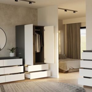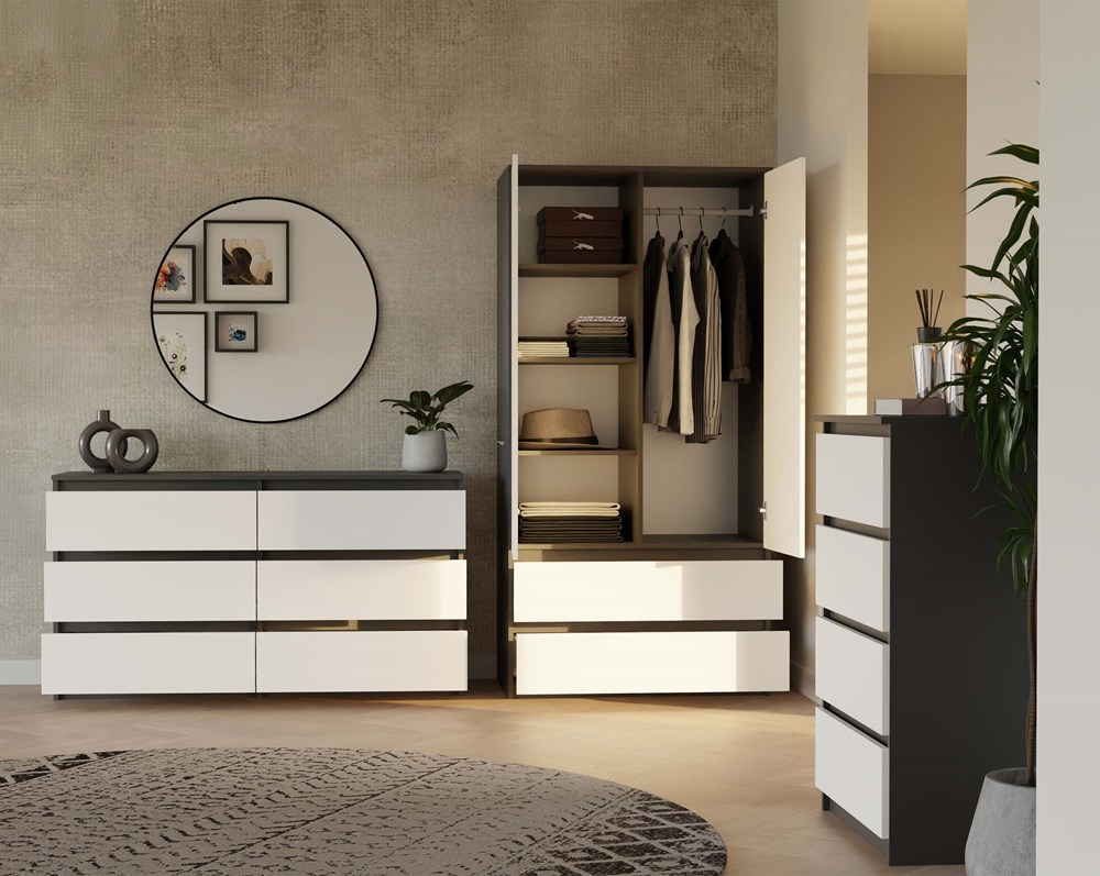 - Mebel wykonany z najwyższej jakości płyty laminowanej odpornej na zarysowania i wilgoć.