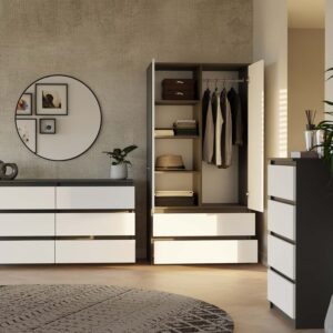 Dokładamy wszelkich starań, aby kolory mebli prezentowane na zdjęciach były odwzorowane możliwie jak najdokładniej. Należy jednak pamiętać, że ich odbiór może się różnić w zależności od indywidualnych ustawień monitora lub ekranu (takich jak jasność, kontrast, temperatura barwowa czy technologia wyświetlania). Rzeczywisty odcień produktu może się także różnić w zależności od warunków oświetleniowych.
