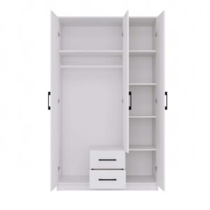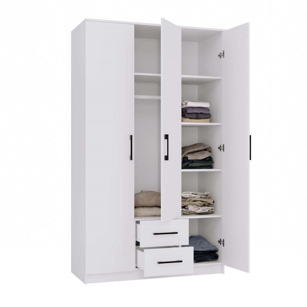 - 3-drzwiowa konstrukcja z podziałem na funkcjonalne strefy: przestrzeń na wieszaki, pojemne półki oraz praktyczne szuflady.