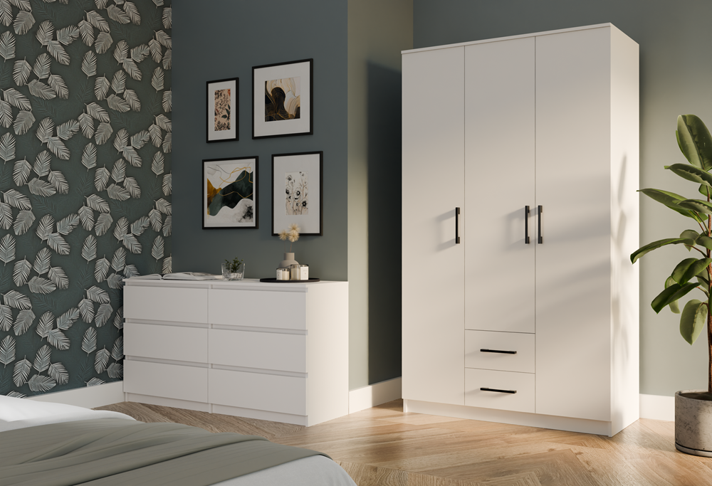 NOWOCZESNA SZAFA DO SYPIALNI Z 3 DRZWIAMI I Z 2 SZUFLADAMI
