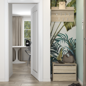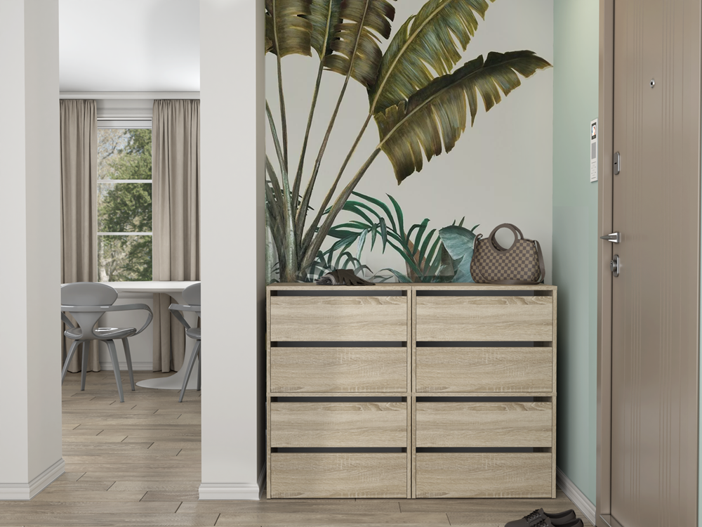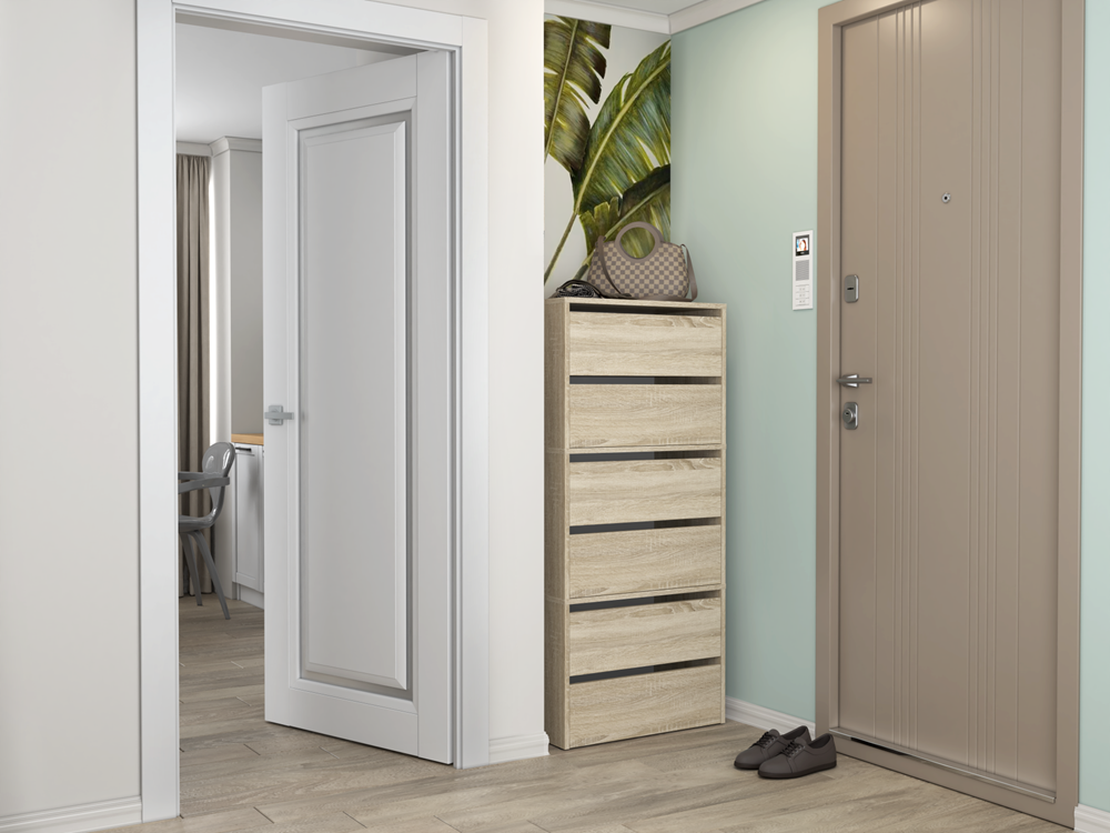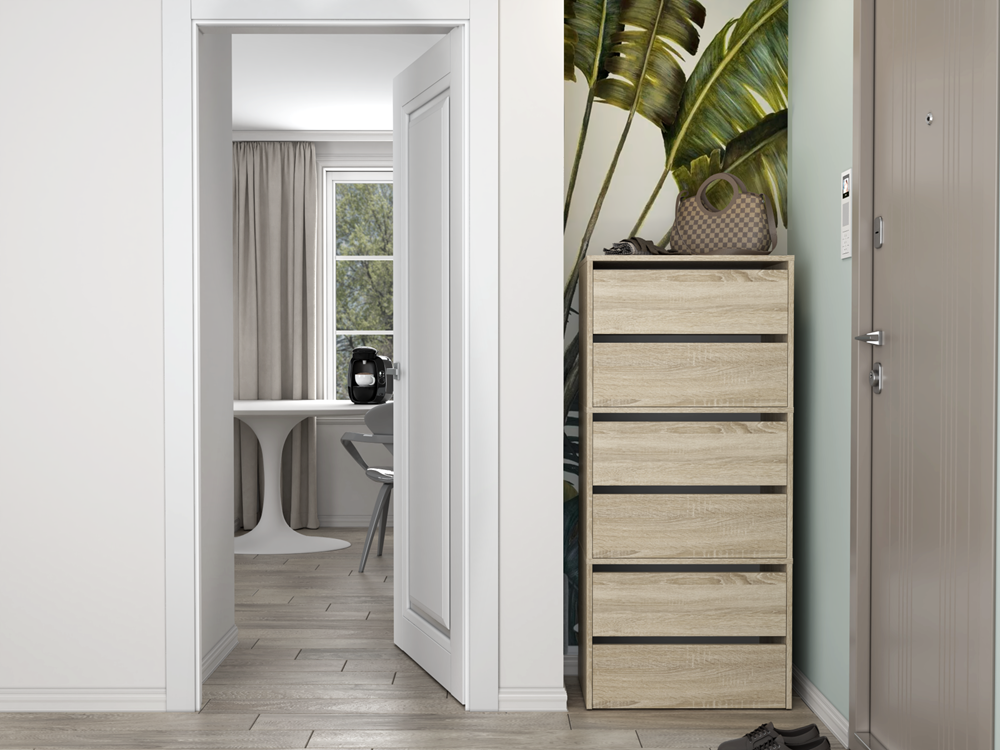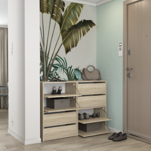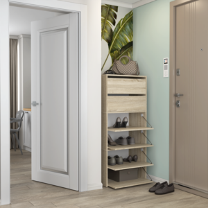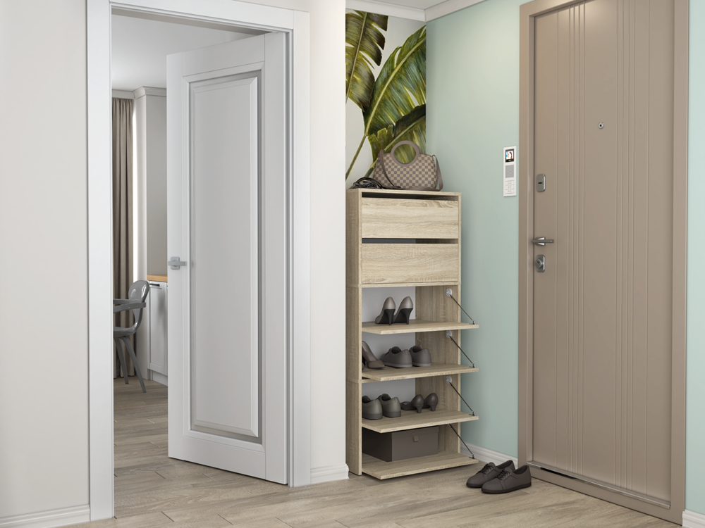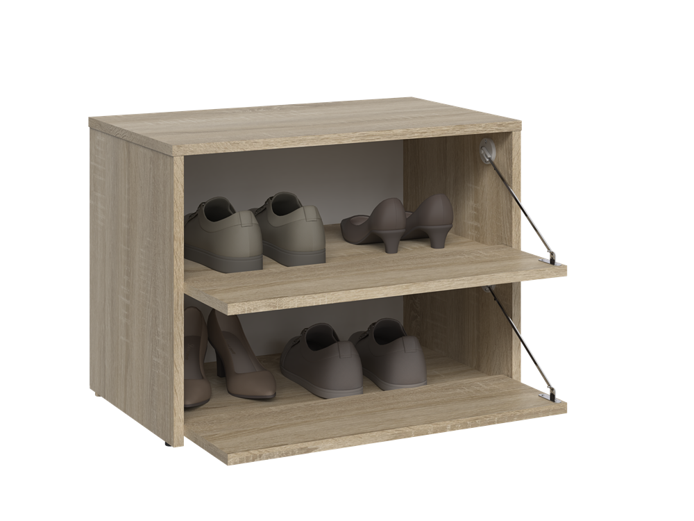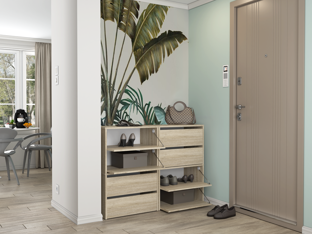 - Za drzwiczkami znajdują sie 2 pojemne półki na obuwie