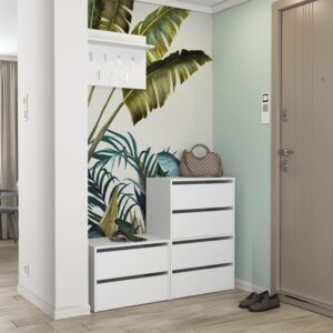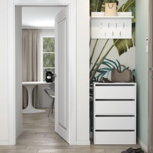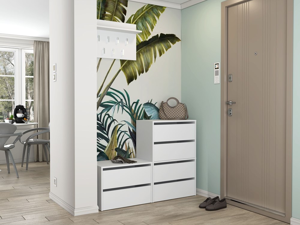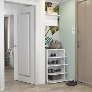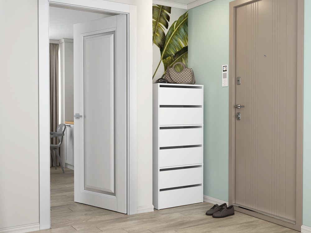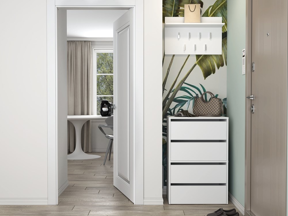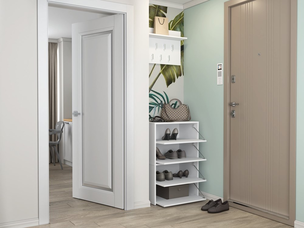 - Za drzwiczkami znajdują sie 4 pojemne półki na obuwie