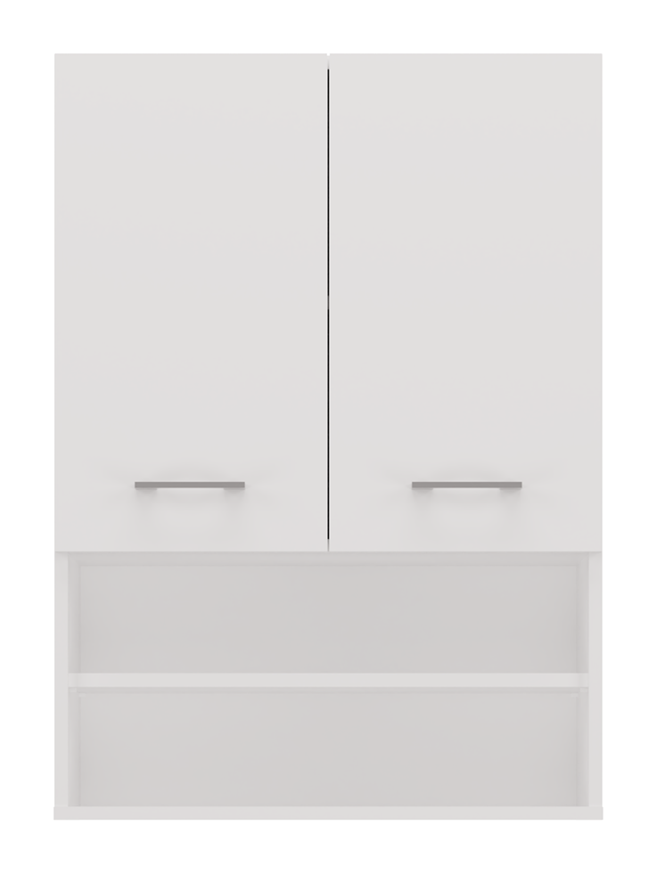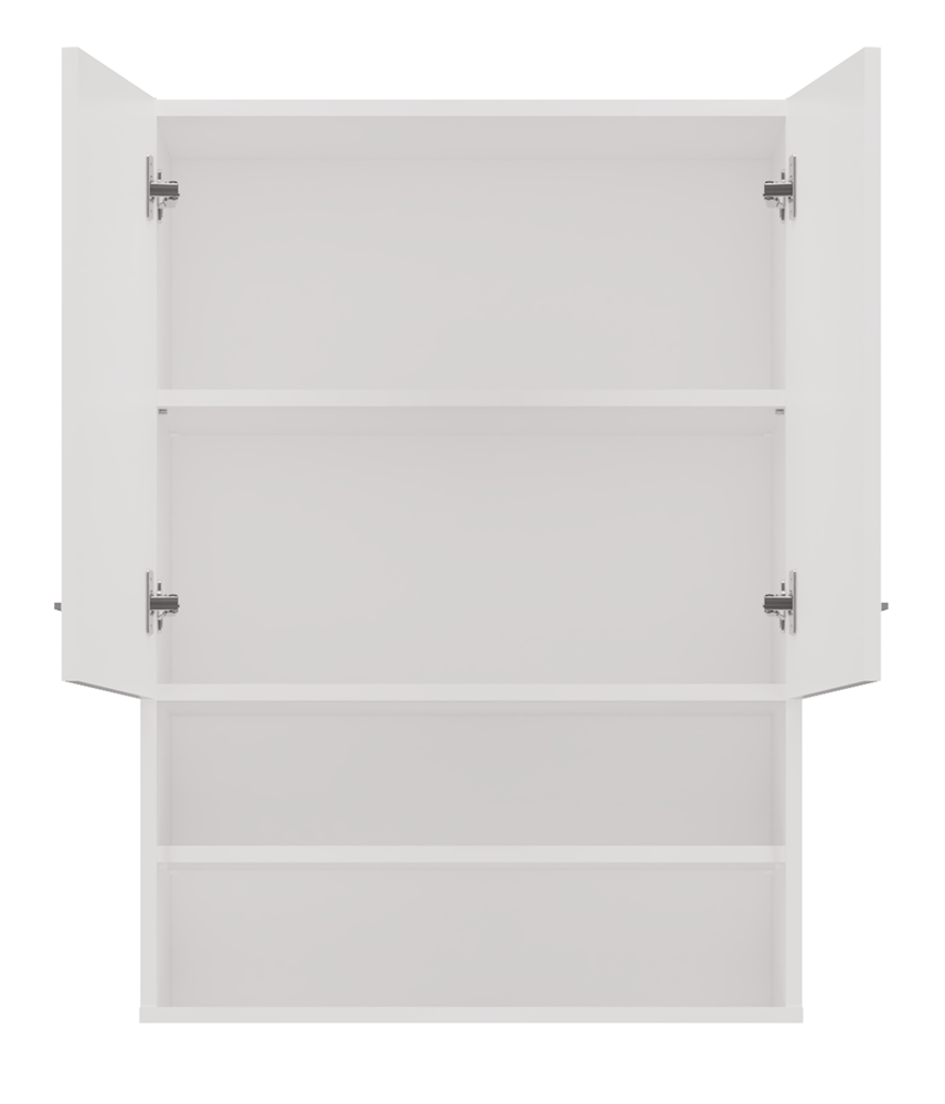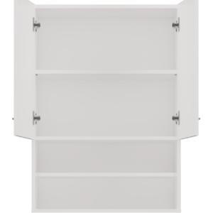 - Szafka posiada 2 półki otwarte oraz 2 schowane za drzwiami